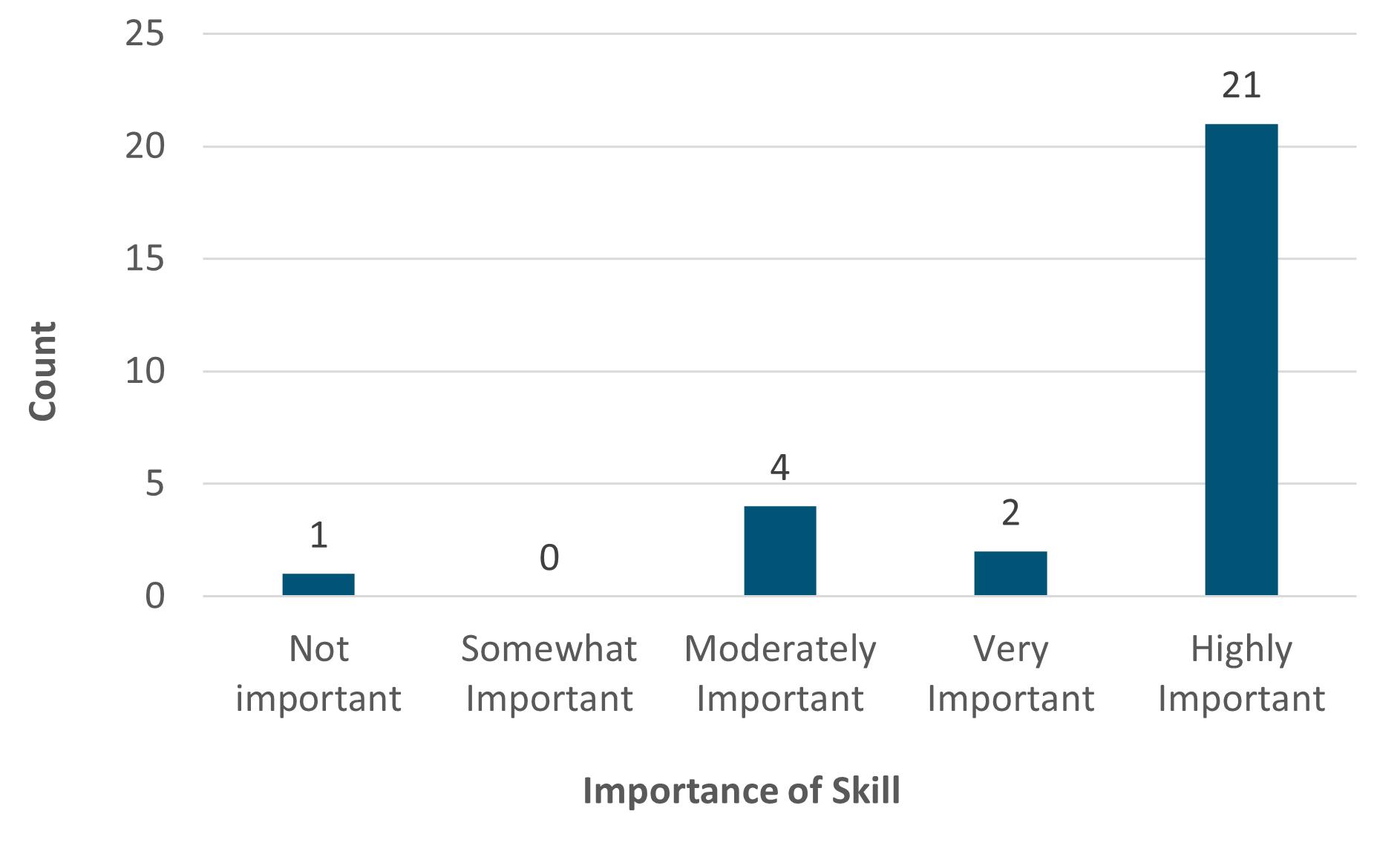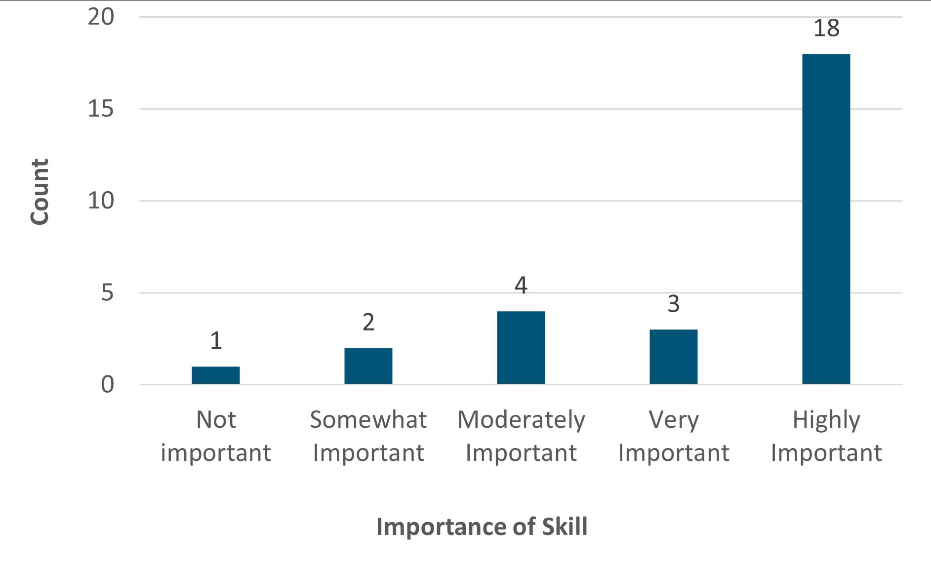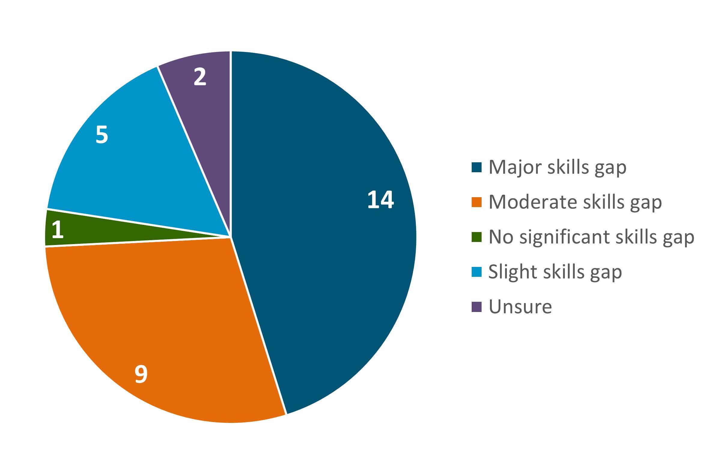 The majority of participants indicated a perception of either a moderate or major skills gap. This group comprised 23 of the 31 responses, highlighting the need for additional training and educational opportunities. A full breakdown of responses is shown in Figure 2 below.