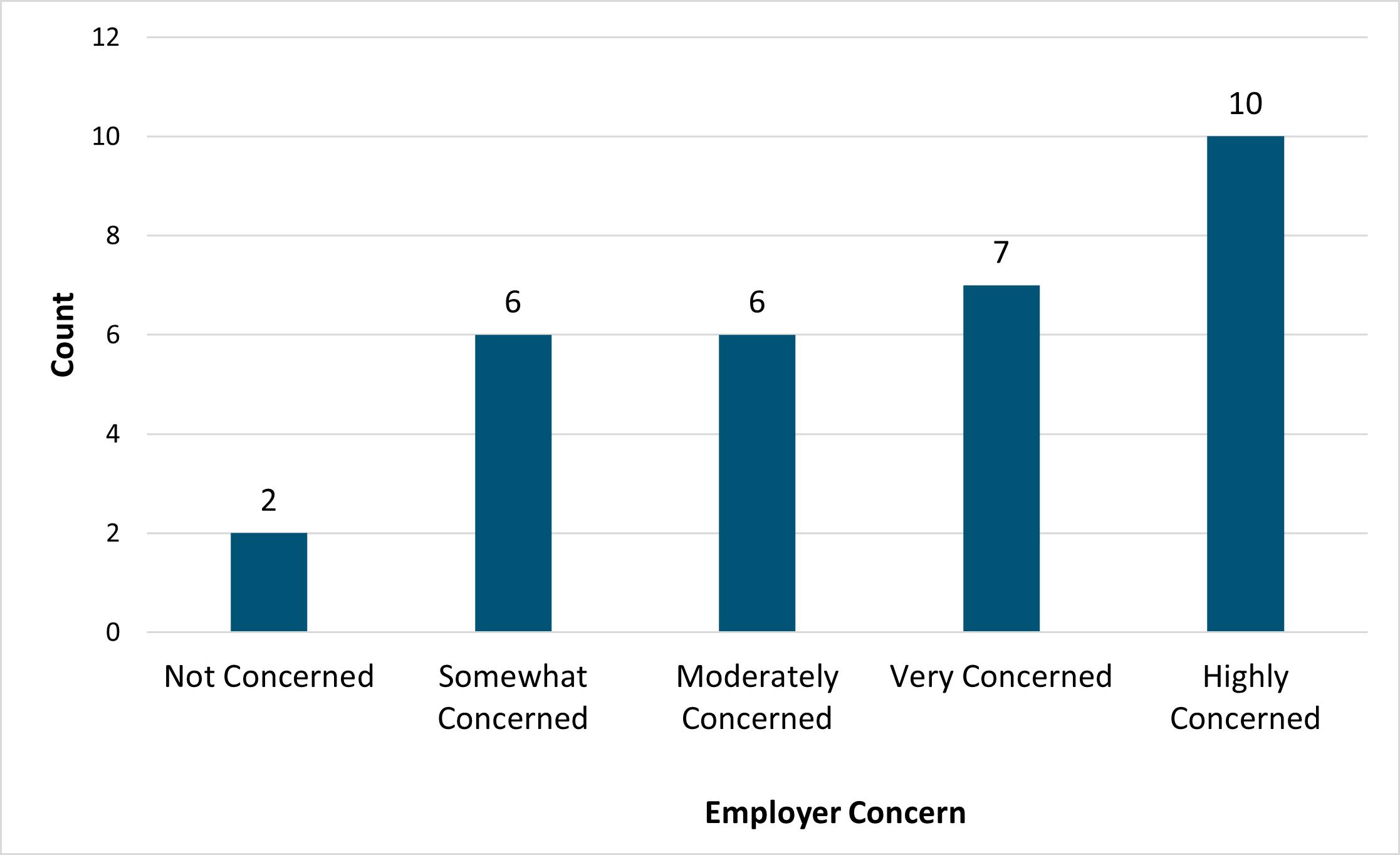 Figure 4 highlights that most participants (74.2%) indicated moderate to high levels of concern regarding a potential shortage of qualified workers in the next five years. In conjunction with the findings on the previous page, it is reasonable to conclude that industry representatives perceive a need for change. One approach that has been successfully replicated in workforce development initiatives is the use of up-skilling or re-skilling of the existing labor force to develop in-demand skills as occupations change.