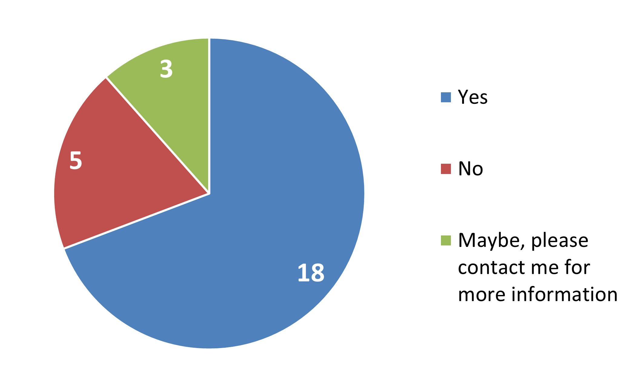 When asked about organizational partnerships as a means to inform curriculum development, the response was very positive, with 69.2% of respondents indicating support. Three more respondents indicated the possibility of a partnership, as shown