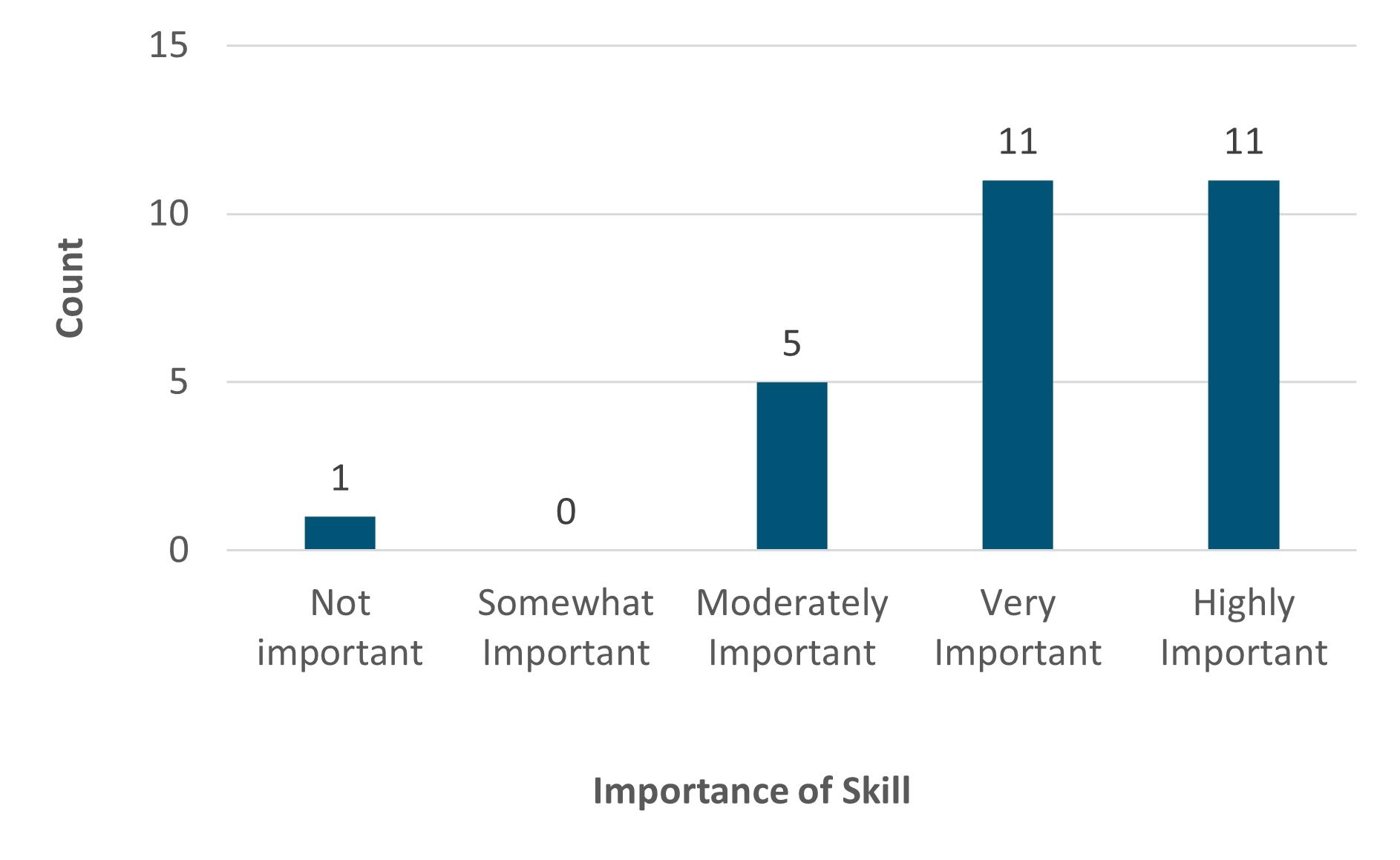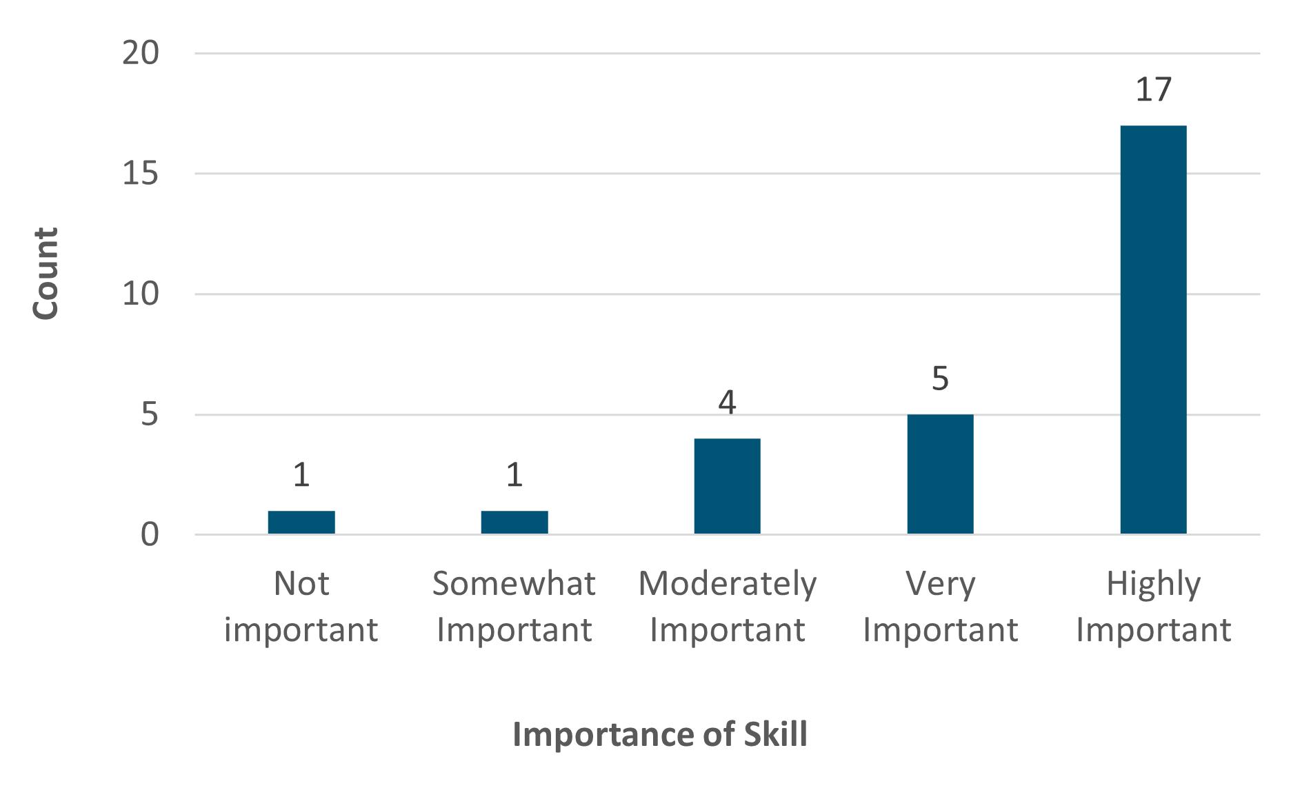 Understanding where talent originates and where skills can be obtained is a critical first step to supporting the hydrogen workforce of the future. Knowing what skills are most important to employers is the next step in this progression. When respondents were asked "Based on your organization's current and future needs, please rate the importance of the following technical skills for your workforce: (Scale: 1 = Not important, 5 = Essential)", the following four metrics (shown in Figures 5.1 - 5.4) emerged as the most important.