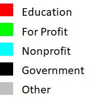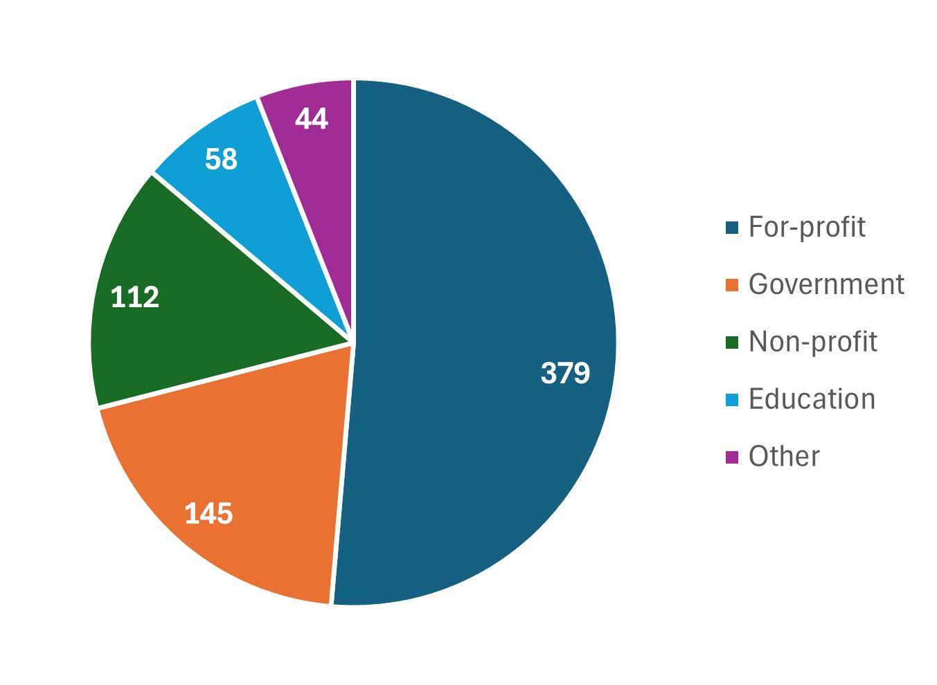 • Sector Breakdown: The majority of the network (51.3%) is comprised of for-profit or private entities, followed by Government (19.6%) and Non-profit (15.2%) organizations.