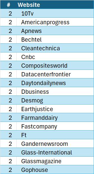 The tables below contain a list of the news sources and the number of articles from each news source.