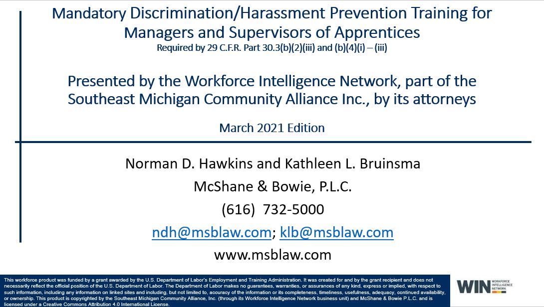 • Mandatory Discrimination/Harassment Prevention Training for Apprentices and Employees