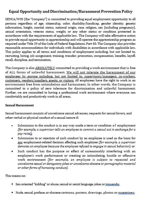 • Equal Opportunity & Discrimination/Harassment Prevention Policy