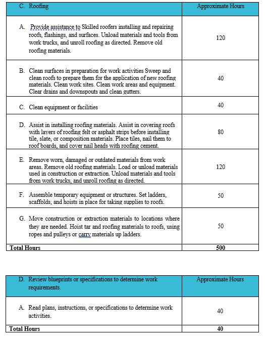 • Apprentices must be registered for a minimum of six months to complete a program. (about 1000 hours)