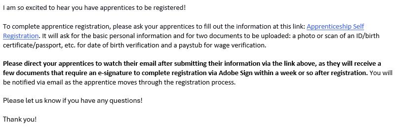 • Submit apprenticeship agreements within 45 days of enrollment of apprentices.