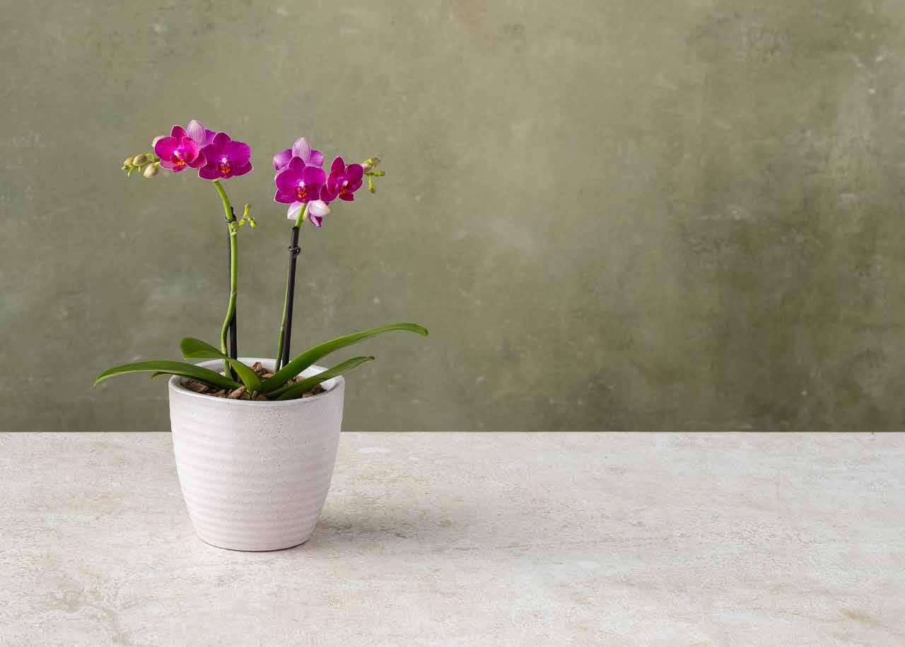 Express your appreciation for those office MVPs with this special feature. A pristine miniature phalaenopsis orchid is offered in a best-of-day color and showcased in a neutral textured ceramic vase. It’s the perfect gift to revive any office desk or at-home workspace.