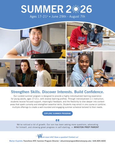 NY | CT | NJ | CA | Transitions (17-21+) | Online Winston Preparatory School, founded in 1981, is a national school network offering students with learning differences including dyslexia, executive functioning difficulties (ADHD), and nonverbal learning disorders (NVLD), a highly individualized, holistic, and responsive education. At the heart of what makes Winston Prep a most unique and effective program is our commitment to providing skills-based remediation tailored to meet the precise needs of each student. Rather than teaching to the “mean,” which reflects the process of teaching to the average skill level expected of the class, we design programming that directly targets each student’s learning profile, one that is profoundly understood through extensive and ongoing assessment using the Continuous Feedback System (CFS). For this reason, our students are grouped together not by age or grade, but by learning profile, allowing them to receive remediation that meets them where they are in both strengths and needs. While teaching to the mean involves implementing instruction that is designed to reach the most typical learner, teaching to the learning profile entails a much more nuanced and individualized approach that is skill-driven and goal-directed, ensuring that the specific and unique facets of each student’s learning needs are addressed and continuously monitored for progress. Additionally, students participate in daily 1:1 instruction through Winston Prep’s Focus Program, targeting their individual goals and areas for skill development. Over the last decade, Winston Prep’s individualized education model resulted in a 99.7% high school graduation rate, with 80% of those graduates college-bound (compared to only 33% nationwide for students with learning differences). Learn more today!