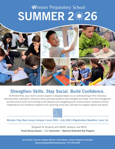 At Winston Prep, your child’s summer program is designed based on our understanding of their individual learning profile, allowing for instruction that is precisely tailored to their strengths and needs. From time management and executive function skill-building to self-advocacy and navigating social communication, students build the independence and confidence needed for the upcoming school year. See back for program options and details.