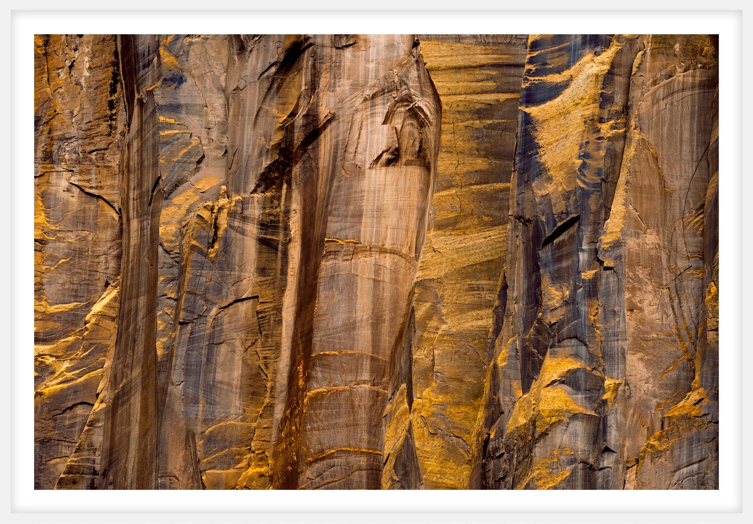 During a rafting trip through the Grand Canyon in 2021, Gall was thrilled by the monumental walls of rock seen at eye level. She describes the experience: “I was dwarfed by a massive alien world, a world that was writhing, a beautiful world that felt very alive.” Thus began her photographic investigation of rock walls that have been shaped over time by rain, erosion, mudslides, earthquakes, geothermal activity; natural phenomena continually and often imperceptibly, transforming the planet.