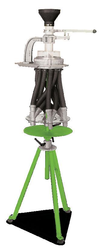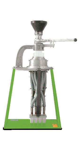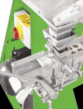 При подъеме загрузочной воронки семена попадают в многокамерный распределитель конической формы, где происходит их разделение на равные по весу образцы, после чего они попадают в пакеты или приемные контейнеры