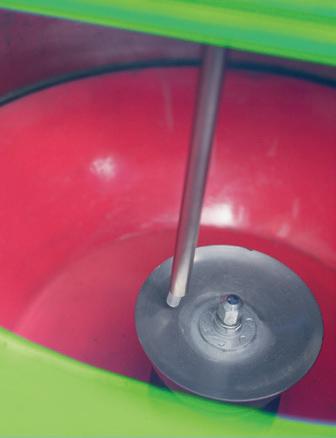 Семенной материал, благодаря вращающемуся двойному дну и центробежной силе в рабочей ёмкости, скользит по внешней стенке, а разбрызгивающий диск равномерно распределяет протравитель по всему семенному материалу.