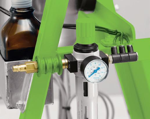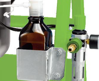 Семенной материал ячейках завихряется, благодаря сжатому воздуху. Протравитель подаётся через дозатор. Доза препарата точно устанавливается заранее и