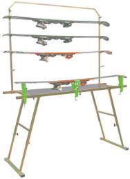 Tendeur de ski très stable en aluminium haute résistance.Avec ses mâchoires de 70 mm de large et ses supports réglables en hauteur, ce tendeur de ski permet une fixation optimale des skis alpins. Grâce aux broches situées au niveau des supports, chaque ski peut être serré à la verticale pour le traitement des carres latérales. Largeur des mâchoires : 70 mm, largeur d'ouverture : 28 - 100 mm. Permet positionnement des skis à 60° pour un travail facile des carres.