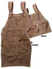 Top Quality waterproof waxed canvas apron with tons of requested features. Designed to hang off the shoulders instead of around neck, tons of pockets including zippered phone pocket, 2 flap covered pockets and a kangaroo pocket. Fully adjustable fit with padded shoulder pads and quick release buckle on side. This will become your favorite apron. 57-450-010pcs.