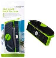 This updated professional side edge sharpener gives very accurate bevels from 90 to 85 degrees. A large knob allows adjustment to one of the 6 possible positions without the need of a screwdriver. Innovative arrow pattern allows waste material to fall free of the base without damage and reduces friction. Accepts file, stones, and diamond stones up to 6 mm thick and comes with a 80 mm ICECUT file (packaged for retail).