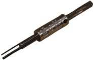L = 15 cm x Ø 1,27 cm diameter tru bar. Heat treated and black oxide treated. Place the tru bar on the base in the tip, under the binding, and on the tail to check for flatness, by looking for light under the tru bar in the middle or by the edges (packaged for retail).
