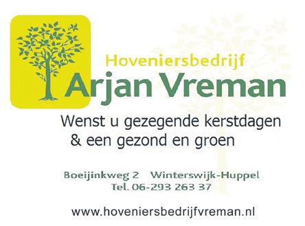 Wooldstraat 43 7101 NN Winterswijk T +31 543 - 513206 www.goossens-wijnen.nl Blekkinkhofweg 10, Winterswijk-Woold 0543 56 44 54 Schoorsteenveegservice te Linde Ratumsestraat 3, 7101 MS Winterswijk 06 - 397 77 418 Generaal Berenschotweg 43 Winterswijk +31 (0)6-20309654 +31 (0)543-522888 www.junkerschilderwerken.nl Bestrating - g rondwerk - k raanverhuur Morskers Driehuisweg 16, Winterswijk-Meddo 06 - 515 63 046 info@prinsenbestratingen.nl www.prinsenbestratingen.nl WIJ WENSEN U en een gelukkig2023! Fijne FeestdaGen