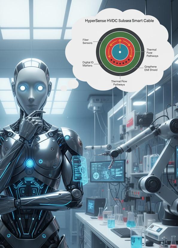 AI: Building the IntelliLine HVDC Power Cable would challenge—but not outpace—the best of today’s cable industry. Most elements, such as XLPE extrusion and multi-material armoring, are familiar within existing HVDC or submarine lines. Much of the HyperSense cable—particularly the conductor, insulation and armor—could leverage adapted existing equipment, possibly with modular retrofits for advanced material handling. However, the simultaneous co-extrusion or assembly of distributed microelectronics and fiber-optics, embedded with the metallic conductor, would require new process control systems and significantly enhanced quality assurance protocols. The biggest early challenge will likely be reliably applying graphene EMI layers and integrating digital elements without losing speed or manufacturing consistency.