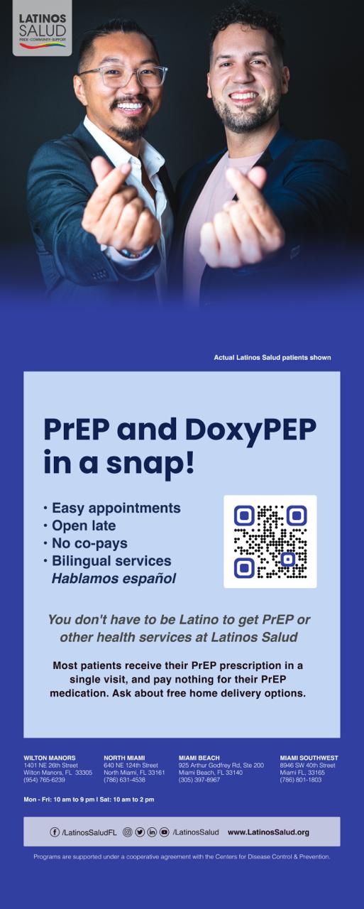 The mission of Latinos Salud is ‘to provide client-centered, culturally competent health education and integrated preventive, screening, and linkage services throughout South Florida in order to reduce the burden of communicable diseases and improve health outcomes.’ Latinos Salud four full-time locations maximize its reach throughout South Florida and offer both appointment and walk-in service five days a week in Wilton Manors, North Miami, Miami Beach, and Westchester, as well as mobile outreach and testing to serve thousands of people annually.