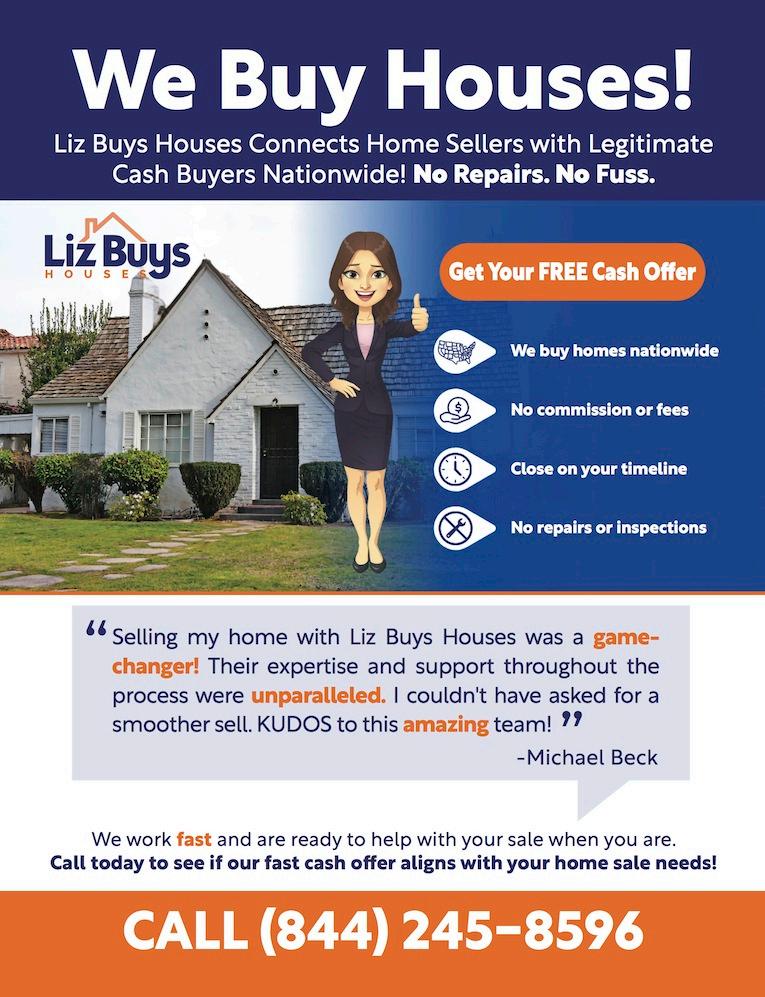 Liz Buys Houses Connects Home Sellers with Legitimate Cash Buyers Nationwide! No Repairs. No Fuss.