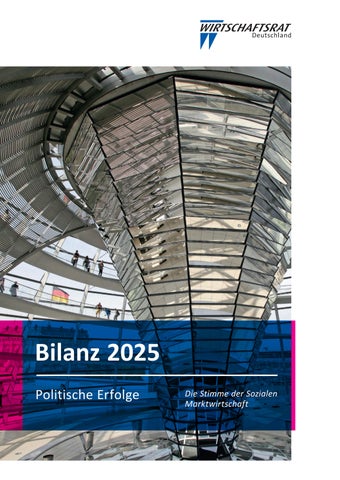 Im Wahljahr 2025 gilt es energisch dafür einzutreten, dass die vielfach gegenüber dem Wirtschaftsrat getätigten Versprechen nach einer signifikanten Verschlankung von Planungsund Genehmigungsverfahren, einem regulatorischen Belastungsmoratorium und einem Rückbau von Berichterstattungspflichten eingelöst werden. Zugleich muss Deutschland eine gestaltende Kraft bei der Verbindung von wirtschaftlicher Prosperität mit dem Erhalt von Klima und Umwelt sein. Darauf wird der Wirtschaftsrat drängen.