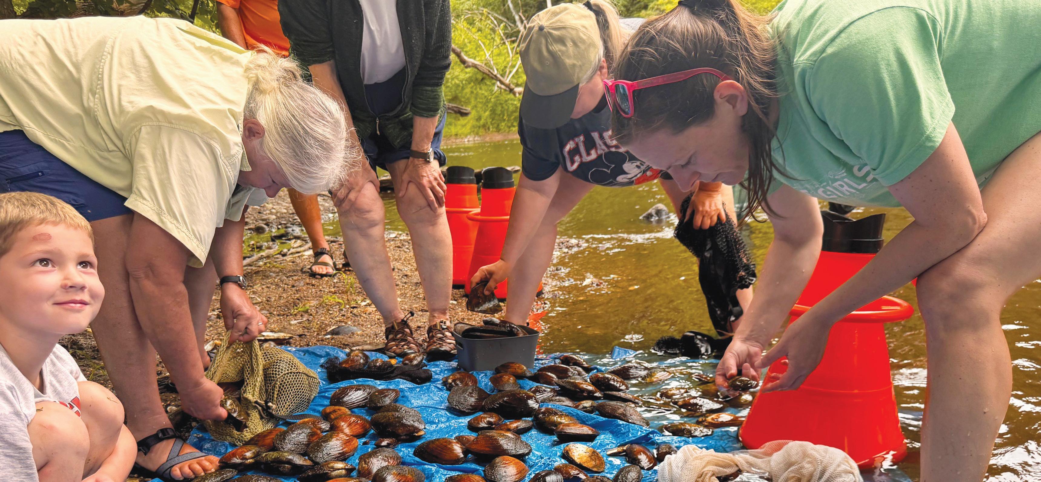 Participants sorting mussels on the 2025 Field Trip "Mussels of the Embarass River."