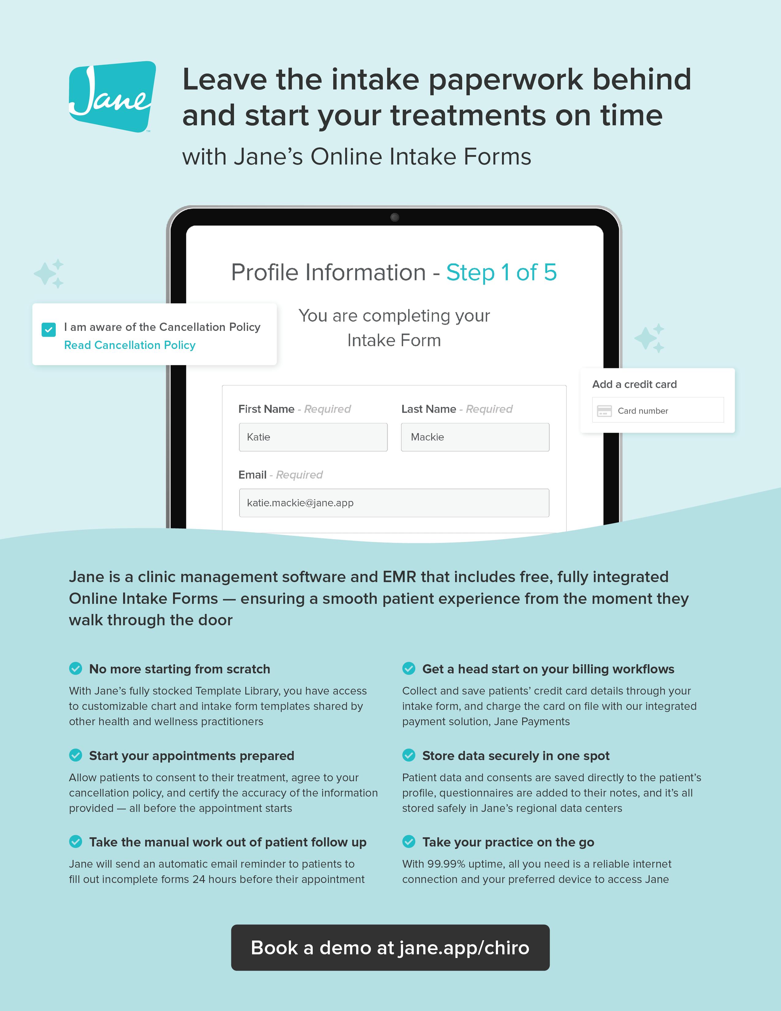 If patients can also conveniently access their intake forms on their own schedule, whether that’s at the time of booking online, through a secure patient portal, or via a secure link from their email, they won’t need to worry about the inconvenience of printing, scanning, and emailing their forms. This ensures the forms are submitted on time, so practitioners and patients don’t have to worry about form-filling taking up appointment time.