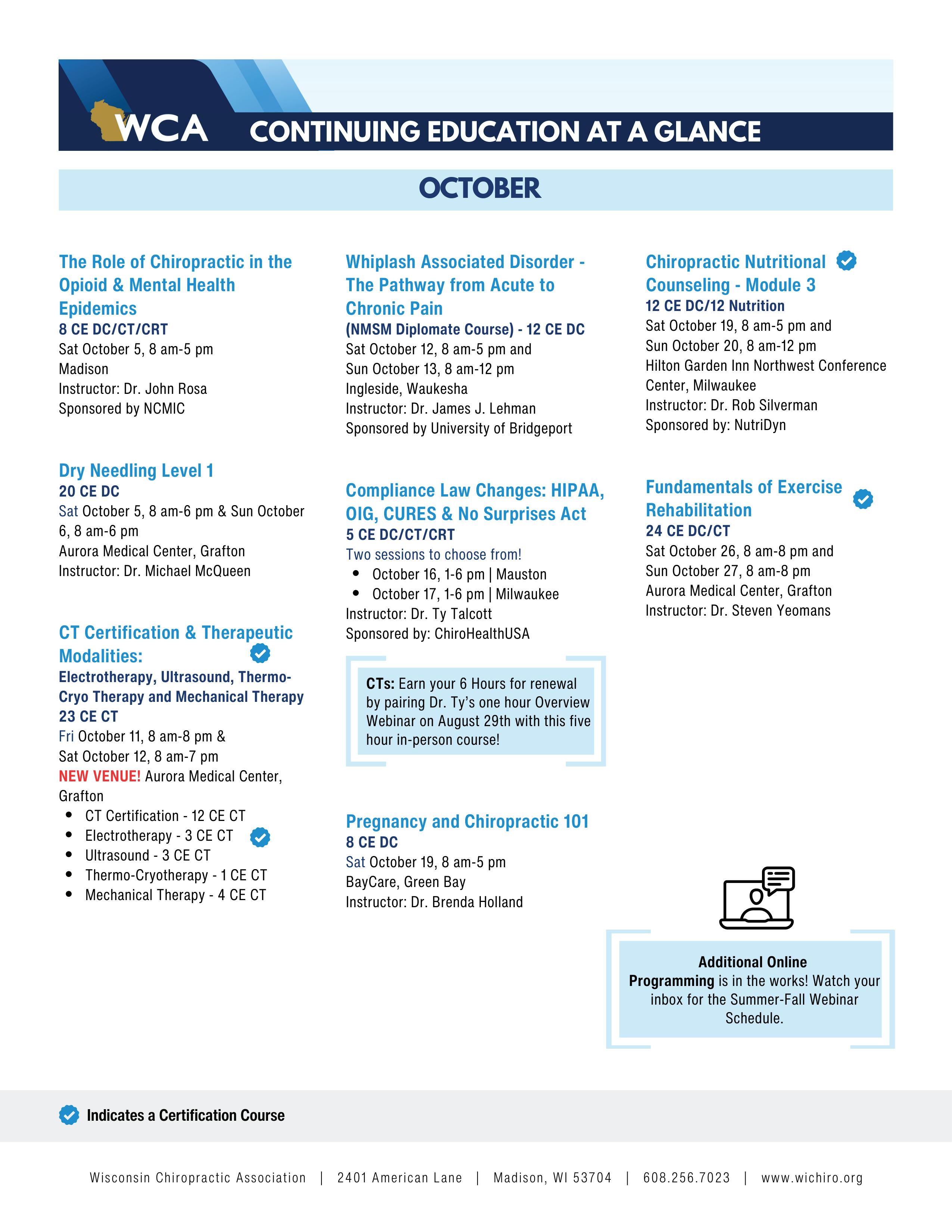 We're excited to recognize your hard work and commemorate our unique legacy together at the WCA Fall Convention! Wisconsin holds a prominent position nationwide as a chiropractic-friendly state, thanks to the strong leadership of the WCA, as confirmed by our national and regional leaders.