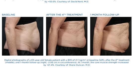• Four HIFEM+RF procedures (once a week over abdomen) and six standalone HIFEM procedures (twice a week over pelvic floor) were administered