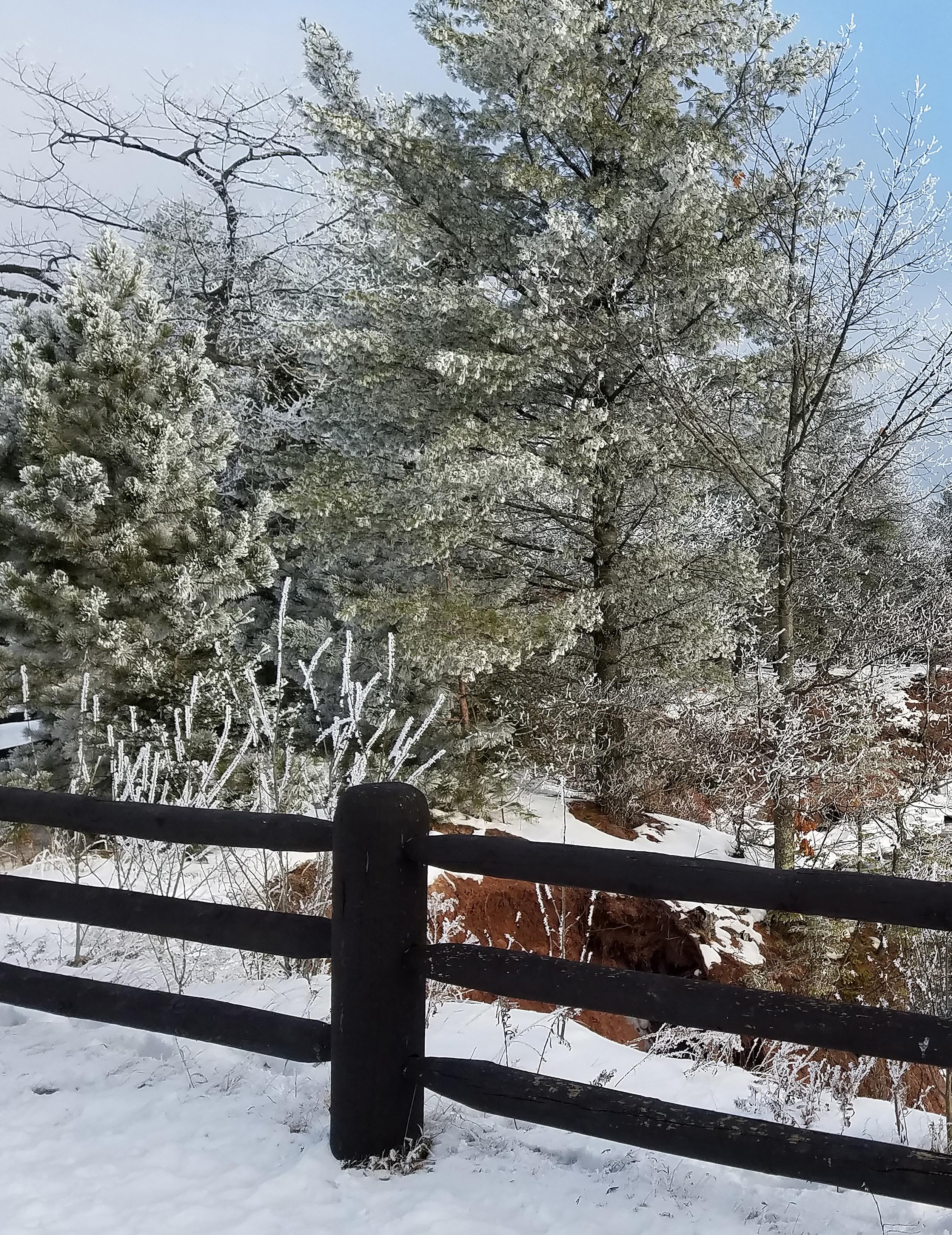 Willow River State Park’s flowing gorge appears frozen in time — encrusted in ice during winter.