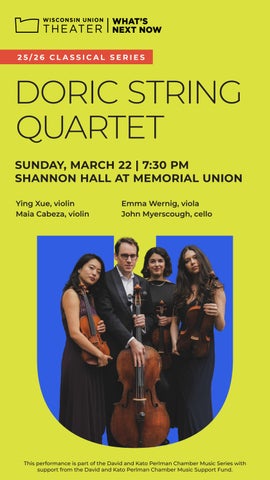 In addition to planning the Wisconsin Union Theater’s season, WUD PAC programs and produces studentcentered events that take place in the Wisconsin Union Theater’s Play Circle. WUD PAC makes it a priority to connect students to performing artists through educational engagement activities and more.
