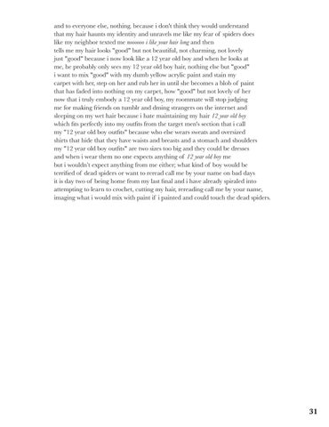 And it’s quiet, not violent; not like you thought it’d be it makes it easier to pretend it didn’t happen to me You make jokes, brag, tell your friends it was okay but not for months, weeks, days, did you realize what happened that day