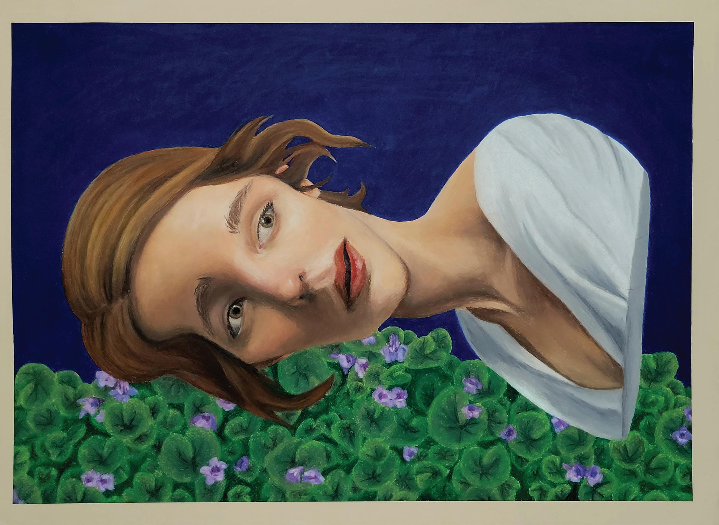 Jessica Sharp is a current art major who is still wandering through many themes and styles of art-making. Typically, her work leans towards realism, but in her short time as an undergraduate student, she has been experimenting with other styles such as surrealism and abstraction. While she has currently been focusing on the mediums of drawing and painting, one of her favorite materials to work with is ceramics. Functional art holds a special place in her heart because it allows her to connect with others. The themes of her work range from nature to family, and she is excited to work on further developing her art with topics that are closest to her.