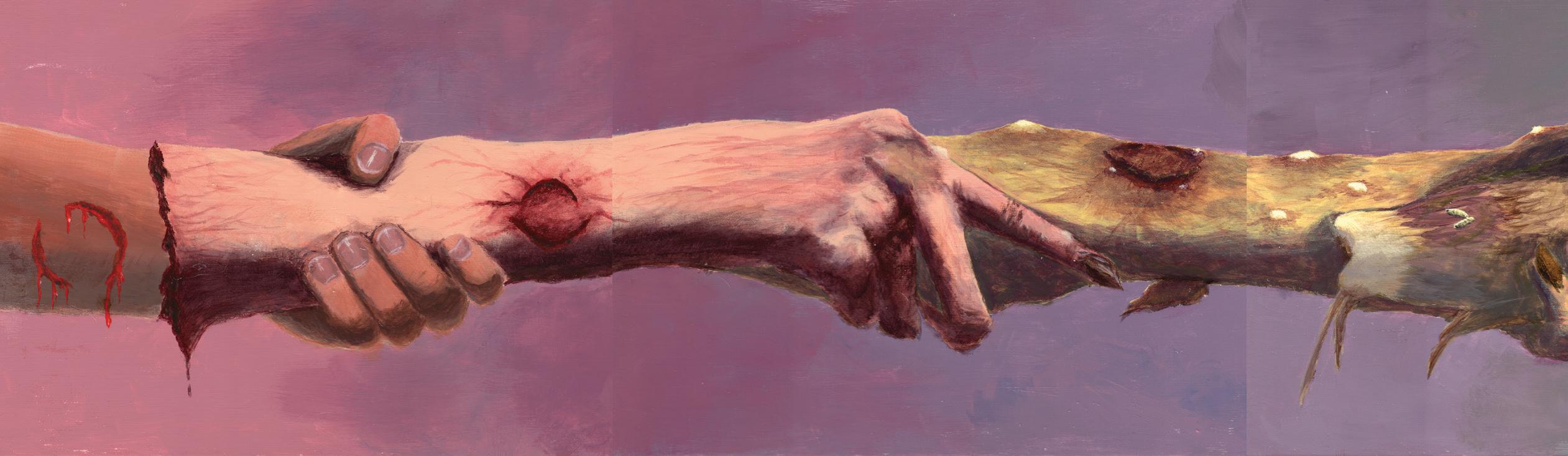 She stayed for as long as she could, until the stench of the dead reached her, and she retched, eyes watering. Even then, she tried to pull Isaac along with her, but he was motionless. He could feel a strange sort of solace wash over him. Like a criminal, tired of