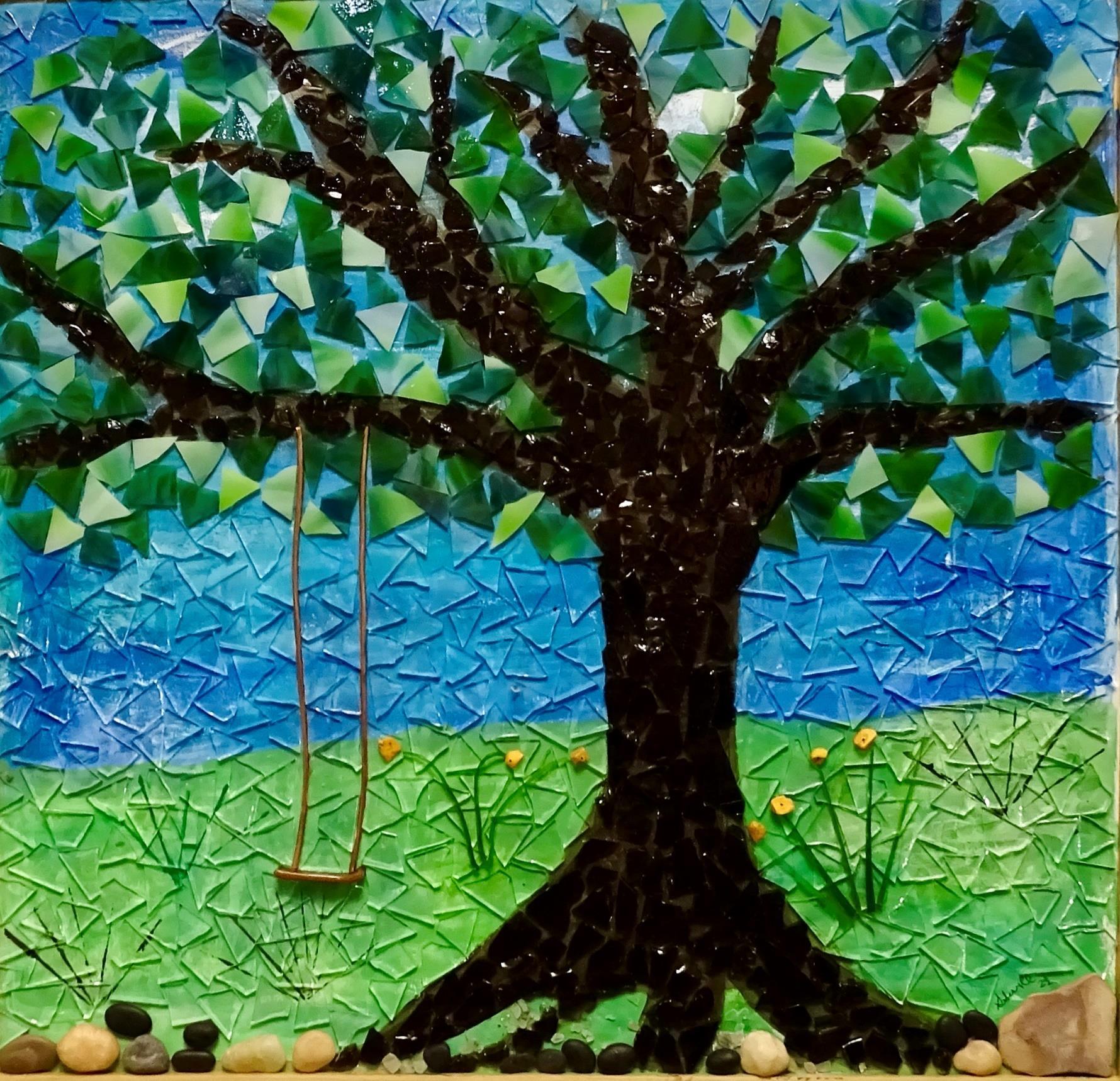 Sue J Sewell www,s2squareddesigns.net A Long Lazy June Day 23 x 24 Stained Glass, Acrylic $300