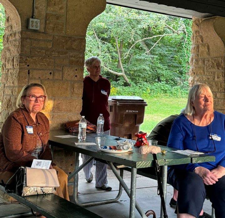 The South Central Chapter Annual picnic was held in August at Hoyt Park in Madison with wonderful weather and a great turnout of members and guests. After dining on sandwiches, chips and cookies, the question was asked: What was your best adventure this summer - art related or otherwise? There were many – a visit to the art hotel C21 in Chicago, seeing the sculptures in Brittany, plein air painting, trips to the UP, painting Taylor Swift on a jean jacket, seals on the Maine coastline - it’s an adventurous and multi talented group!