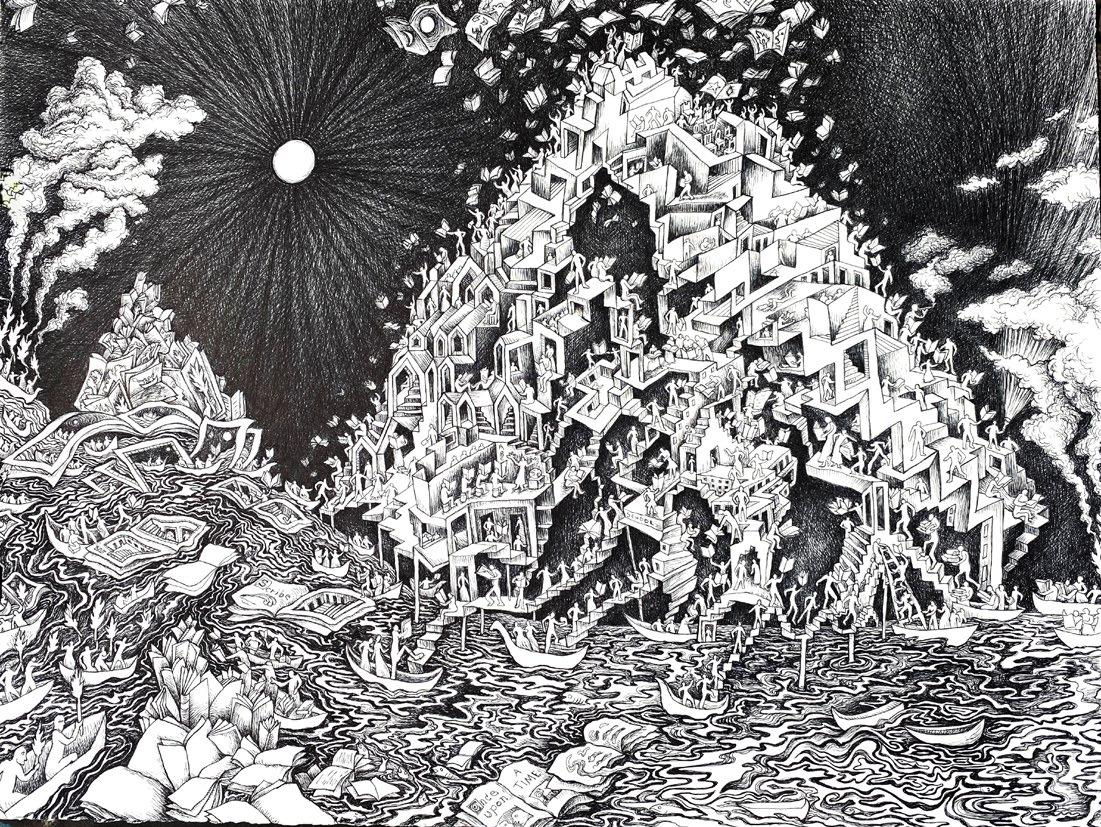 Once Upon a Time, Ink Drawing, 22 x 30" 2024
