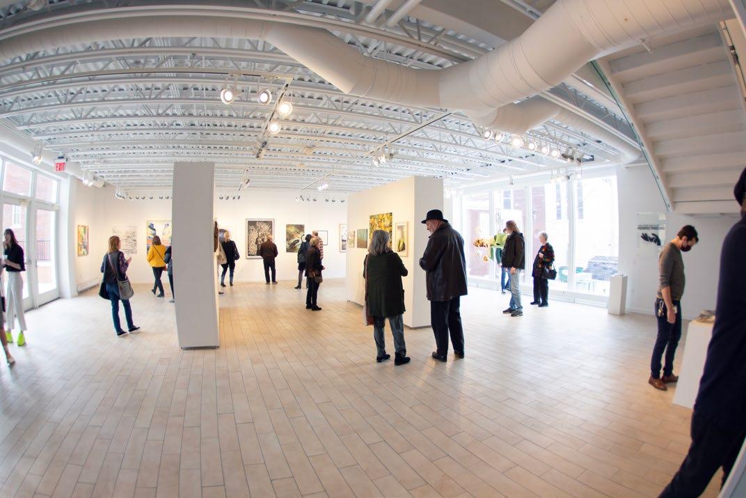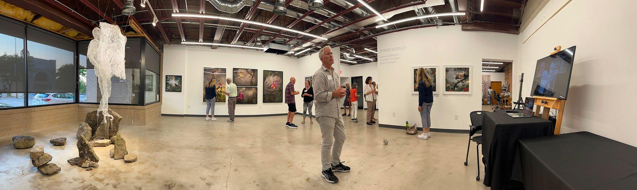 Overview of newARTSpace front gallery where the NE Chapter meeting was held. The exhibit on view: “Other Worlds: Jason DeMarte, Kristine Granger, and Don Krumpos” Open Sept 13 – Oct. 19, 2024