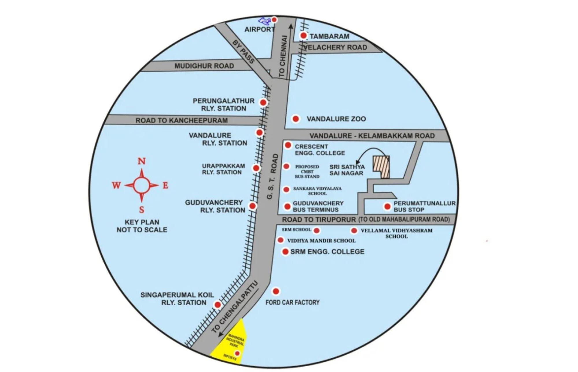 Wisdom Properties presents a well developed layout in Sri Sathya Sai Nagar The layout is located 1 km from Nellikuppam Main road, Perumattunallur, Guduvanchery. Close proximity to schools, colleges, developed residence, clean environment, and sweet water are making living atmosphere more comfortable in Sri Sathya Sai Nagar These villa plots in Perumattunallur comes with a wide range of world class amenities which promise a lifestyle suitable for all age groups