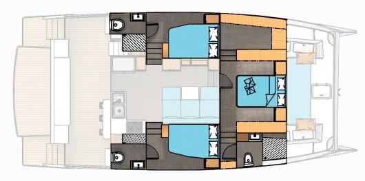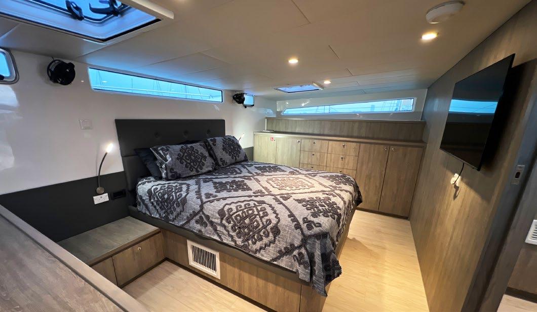 The master cabins boast king sized beds with ensuites and fresh water flushing toilets for each cabin.