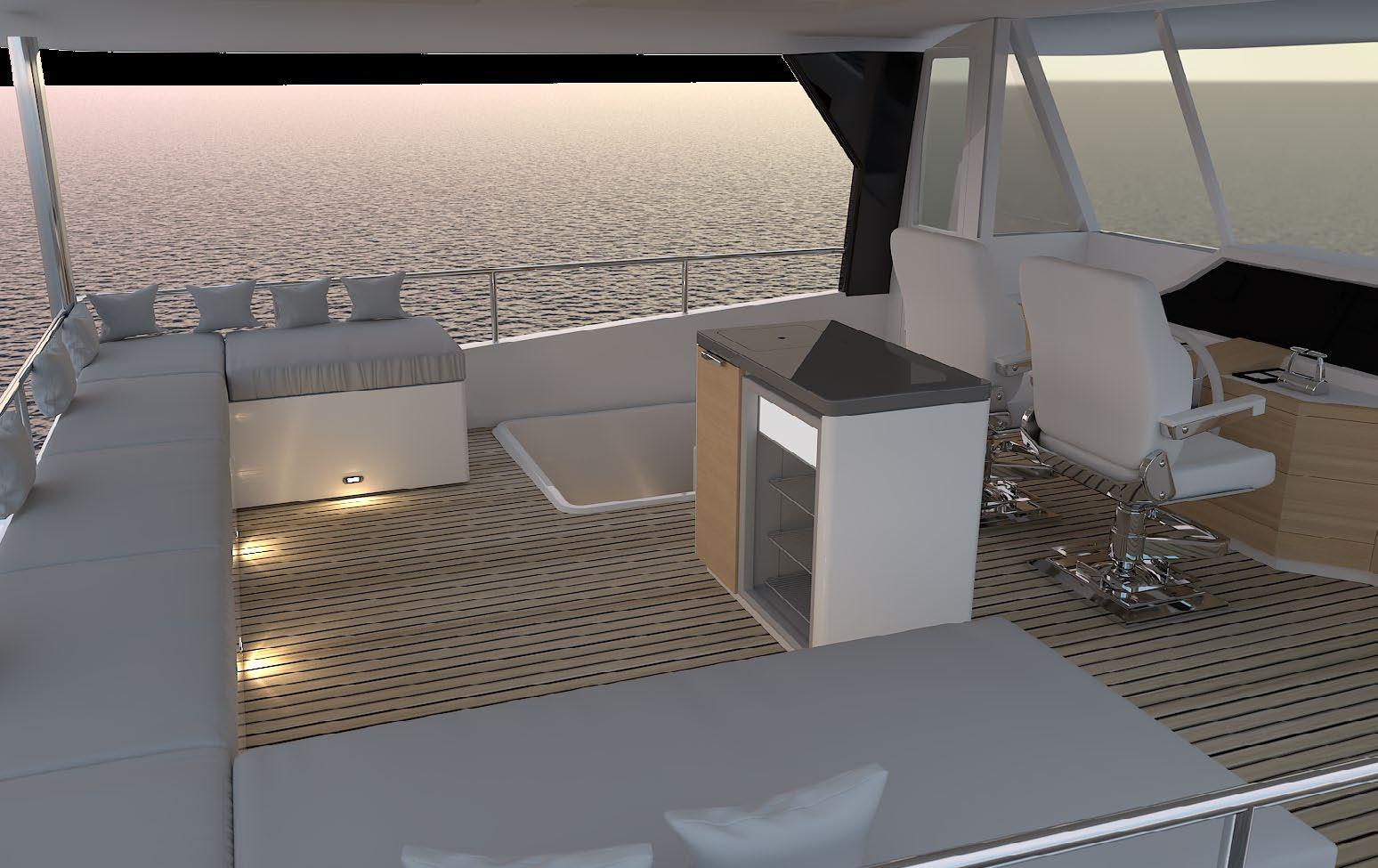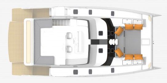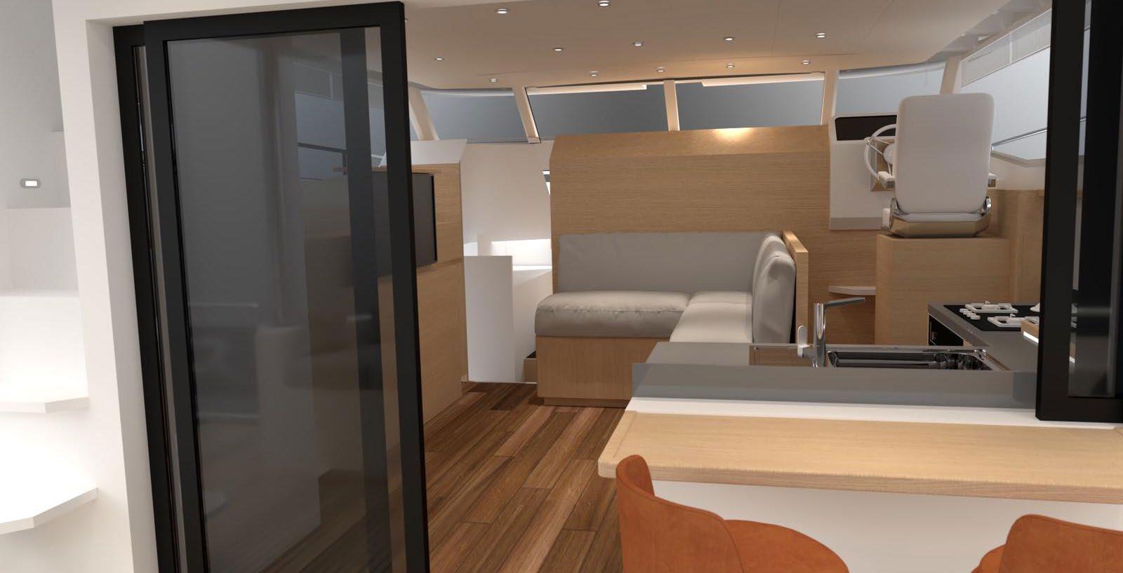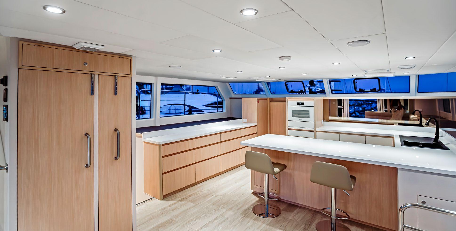 There is no compromise on creature comforts onboard a Longreach, with a full upright fridge, spacious saloon dining and galley opening into the cockpit.
