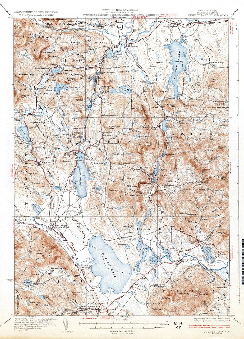 SOURCE: State of New HampshireHighway Department - Maps Pre-1945 Topo NH Ossipee Lake Quadrangle - 1927 PCL Map. Red line represents “Hard Im perviously Surfaced Roads.”