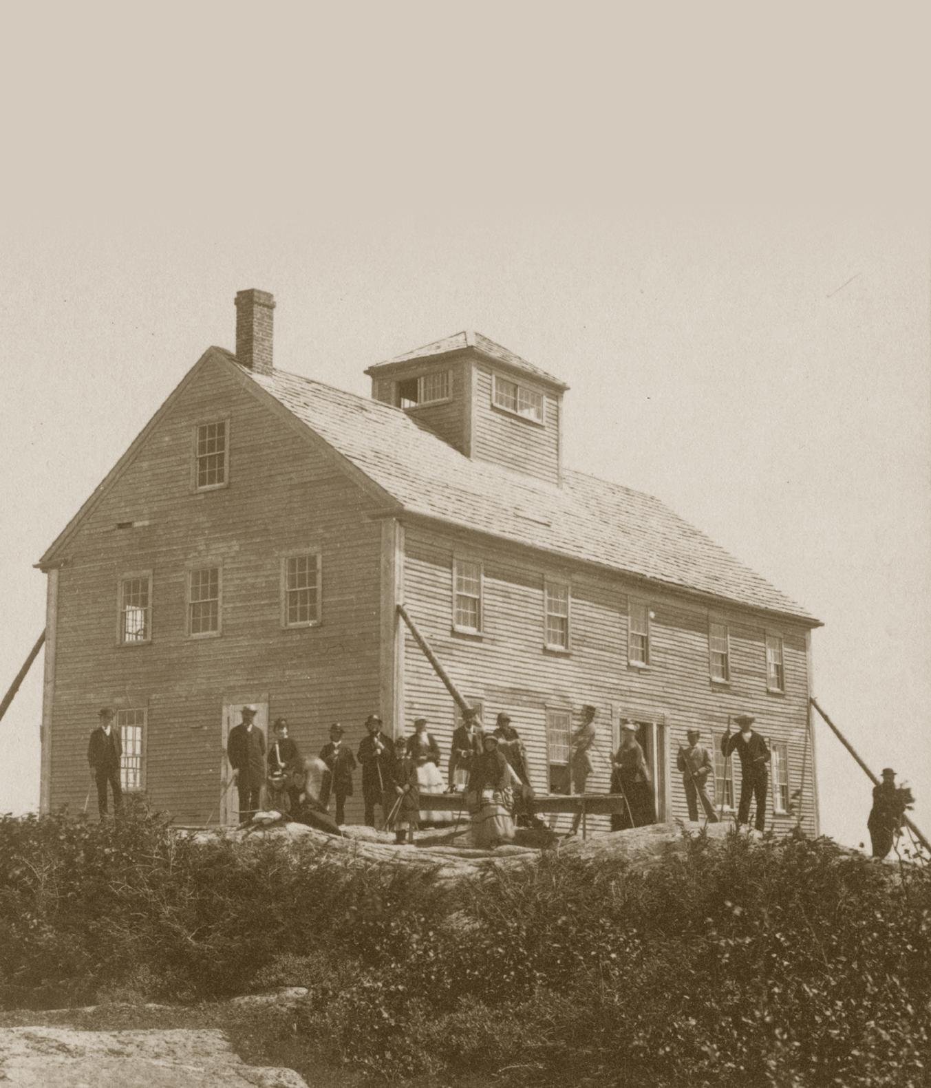 Local entrepreneurs Nathaniel Frye, Moses Chandler, and John Dana built the first structure on the summit of Kearsarge around 1840, and it was known as the Summit House. This summit house predated Mt. Washington’s “Tip Top House” by four years. It was a slow building process, with all materials being brought up the face of the mountain by ox-sled in the dead of the winter. This house was a simple structure that began to fall into disrepair over the years.