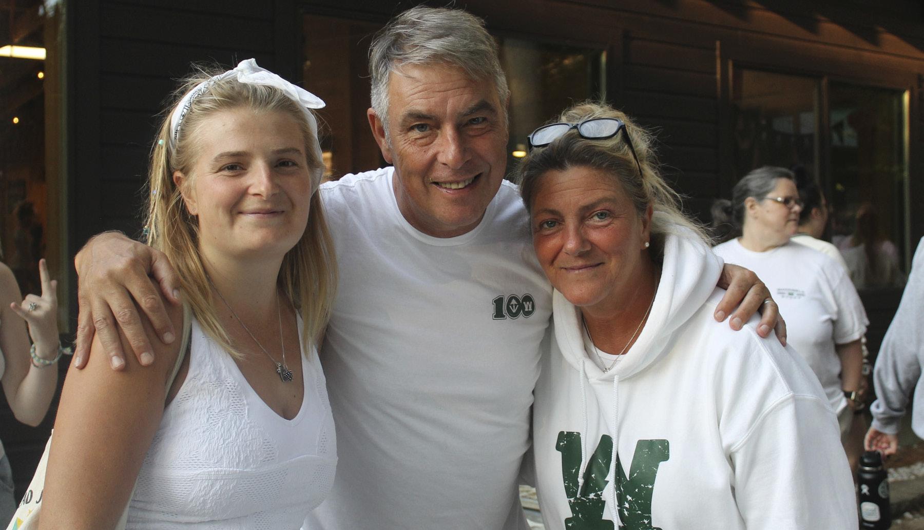 Camp directors, Graham and Gillian Moore (center and right), are entering their ninth summer at Waukeela, having first experienced the Pine Grove in the summer of 2015 on a visit to see their daughters Ellie (left) and Rosie, who were both counselors that summer.