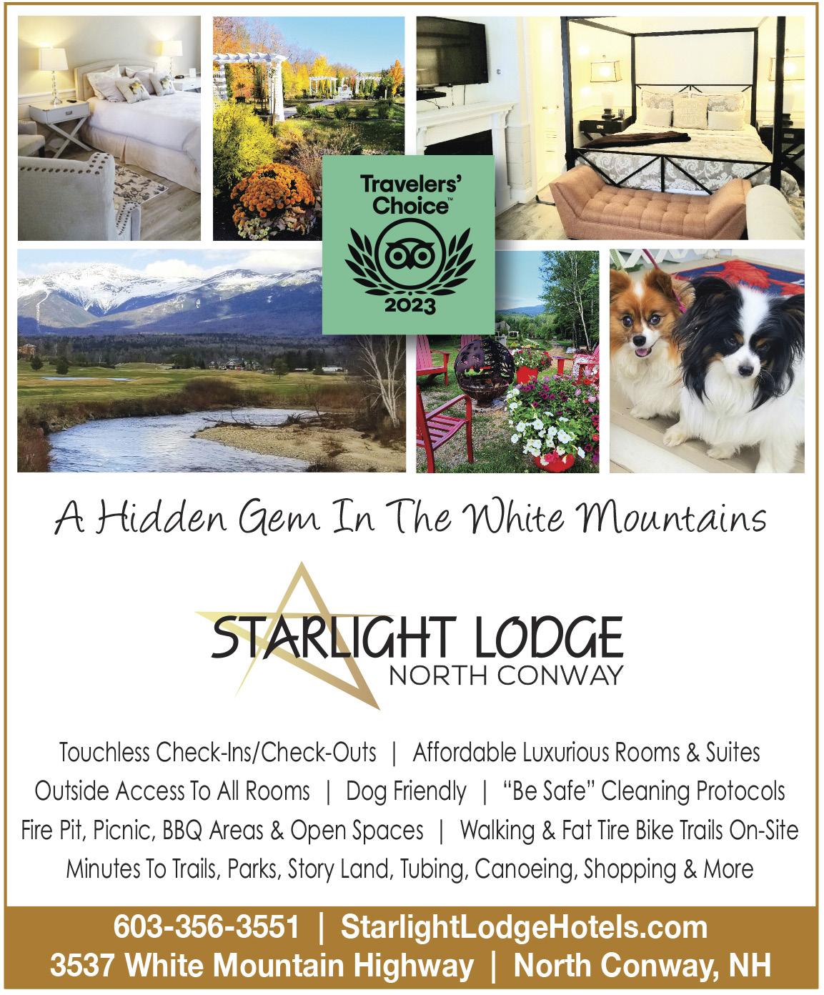 Spring 2024 83 WHITE MOUNTAIN INDEPENDENTS WhiteMountainIndependents.com For charm, service, & distinctive products, we invite you to SHOP THE BLUE FLAGS in support of our small, locally-owned retailers! North Conway Village (603) 733-5144 • ItsMyGirlfriendsNH.com Located Next to the Train Station No Soot, No Toxins, Burn Longer, Cost Less North Conway Village (603) 986-8969 • Soyfire.com 20% Off Fragrance of the Month Visit our store to pick up quick meals or to experience restaurant-quality food at home! VenosNH.com (603) 662-0615 715 White Mountain Hwy, Conway, NH SPECIALTY FOODS & MEATS (603) 662-0452 328 White Mtn Hwy, Conway, NH Antiques • Home Decor • Jewelry Custom Furniture • Chalk Paints Give us a Try ... or Buy Online! Reporter Court No. Conway Village (603) 356-9643 WhiteMountainWinery.com
