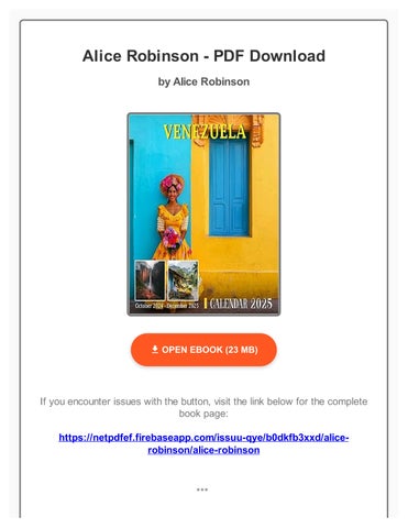 "ExperiencethedetailedliterarypieceasaPDFfileauthoredbyAlice Robinson,titledAliceRobinson.Peruseeverychapterofthismasterpiece forfree.Commencereadingasapdfdocumentrightnow."