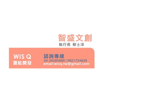 諮詢專線 04-26280989 / 0921724829 email:wisq.tw@gmail.com
