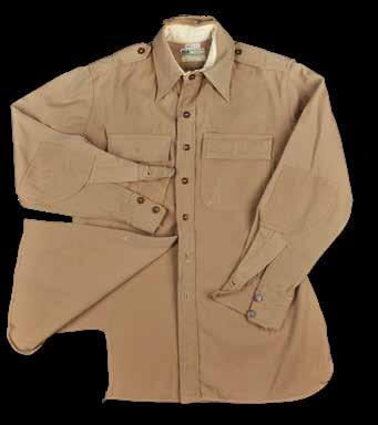 During the Battle of Buna in 1942, Robert C. McCoy had to cut out segments from the tails of his shirt to patch holes in the sleeves due to the terrible jungle conditions and constant combat. V2011.43.74