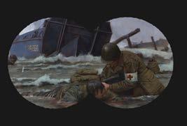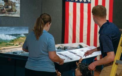 The exhibit D-Day, Omaha Beach, designed by Keith Rocco, was created in 2024 to commemorate the 80th anniversary of D-Day and has traveled the country since. On June 6, 1944, the world witnessed the largest seaborn invasion in history, which laid the foundation for the Allied victory on the Western Front of the European Theater of World War II. In our changing gallery, the exhibit focuses on the beach codenamed Omaha Beach, one of the five French beaches occupied by Germany along the coast of Normandy. German forces had fortified Omaha Beach the heaviest, causing the bloodiest action on D-Day, with approximately 2,400 U.S. troops killed in action, wounded, or missing. The exhibit pays tribute to all the men and women who served during World War II, both on the battlefield and at home.